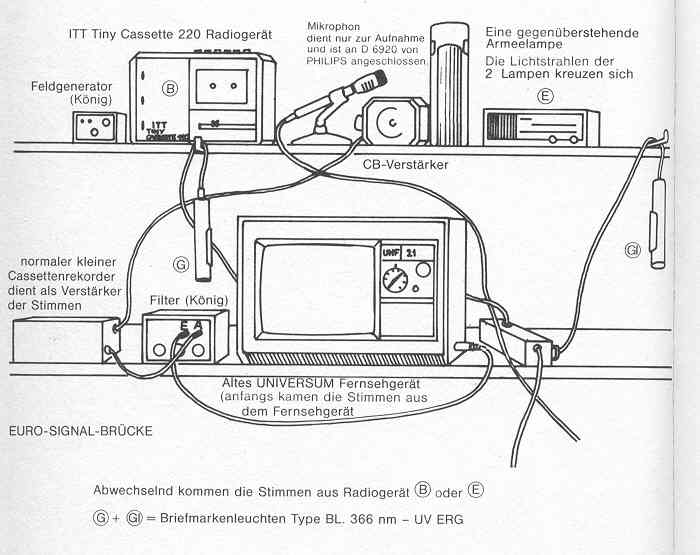 Durch das vorangegangene Abzählen vor den Kontakten versuchte der "Techniker" jedes mal die Frequenz seiner synthetischen Stimme und die der anderen sich meldenden Wesenheiten mit der Frequenz des von Harsch-Fischbach benützten Radiogerätes abzustimmen. Durch ihn bekamen sie alle Angaben zum Aufbau einer ganz bestimmten Anlage (Eurosignalbrücke ESB) und zum Aufbau einer zweiten Anlage (Gegensprechanlage GA 1), welche den Gegensprechverkehr, also besser Dialoge ermöglichte. Laufend erhielten die Experimentatoren Anweisungen zur Verbesserung und Ergänzungen dieser Anlagen.