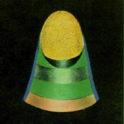 Es ist erfrischend, sich von diesem düstern Bilde zu der ganz verschiedenen Wirkung zu wenden, die derselbe Vorgang durch das Gemüt eines Menschen hervorbringt, der versteht, um was es sich handelt. Man bemerkt, dass die beiden keine einzige Empfindung gemeinschaftlich haben; im ersten Falle nur Verzagtheit und Schrecken, hier nur die höchsten und schönsten Gefühle. Auf der Basis der Gedankenform finden wir den vollen Ausdruck tiefer Sympathie, und zwar drückt das Hellgrün die Anteilnahme an dem Schmerze der Leidtragenden aus, während das Band von dunklerem Grün die Stellung des Denkers gegenüber dem Toten selbst andeutet. Die tiefe Rosafarbe zeigt die Liebe sowohl für den im Sarg Liegenden, als auch für die Leidtragenden, und der obere Teil des Kegels, sowohl wie die daraus aufsteigenden Sterne, sind ein Beweis für das, in dem Denker durch die Betrachtung des Todes erregte Gefühl. Das Blau drückt die Frömmigkeit desselben aus. ...... [Zitatende]