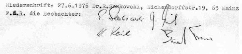 Niederschrift: 27.6.1976 - Dr. Ernst Senkowski - Eichendorffstr. 19 - 65 Mainz