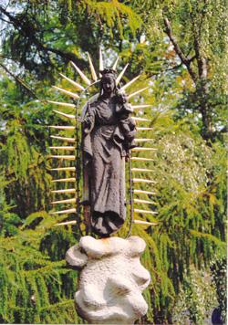 Nach meinem Erlebnis verstand ich plötzlich, warum dies so ist, und ich wusste, dass die betreffenden Künstler in vielen Fällen ebenfalls eine solche Erscheinung gehabt haben müssen. Denn trotz großer Unterschiede in den Wiedergaben der Mariengestalt ist der ovale Strahlenkranz mit den Pfeilähnlichen Strahlenfortsätzen, die zu pulsieren und zu vibrieren scheinen, immer wieder anzutreffen! Ein geschlossener Strahlenkranz mit zahlreichen geschwungenen Strahlenansätzen umgibt beispielsweise die „Maria mit Kind“ im Dom zu Trier. Bei der Madonna in der Paulinus-Basilika, gleichfalls in Trier, werden die Strahlen noch mehr hervorgehoben. Dies ist auch der Fall bei der „Strahlenkranz Madonna“ im St. Nikolausmünster in Überlingen am Bodensee, wie ich anlässlich eines Urlaubs mit meiner Familie im Jahre 1992 dort bei einem Kirchenbesuch feststellte. Das wir uns ausgerechnet in dieser Stadt eine Ferienwohnung gesucht hatten, war meiner Frau und mir schon irgendwie sonderbar vorgekommen. Als ich dann aber auf einem Spaziergang im oberen Teil Überlingens ‚zufälligerweise‚ den „Marienbrunnen“ entdeckte, empfand ich dies als eine Fügung. Denn genau diese Darstellung Marias glich in frappierender Weise der Erscheinung, die ich selbst im Traum gehabt hatte! Wenn aber die Frauengestalt, die mir erschienen ist, nicht Maria ist, andererseits aber beide Erscheinungen in ihrer „Aus-Strahlung“ sehr ähnlich sind, dann bedeutet dies, dass außer Maria auch andere, ehemals in einem physischen Körper lebenden Menschen ihren Tod überlebt haben müssen! |