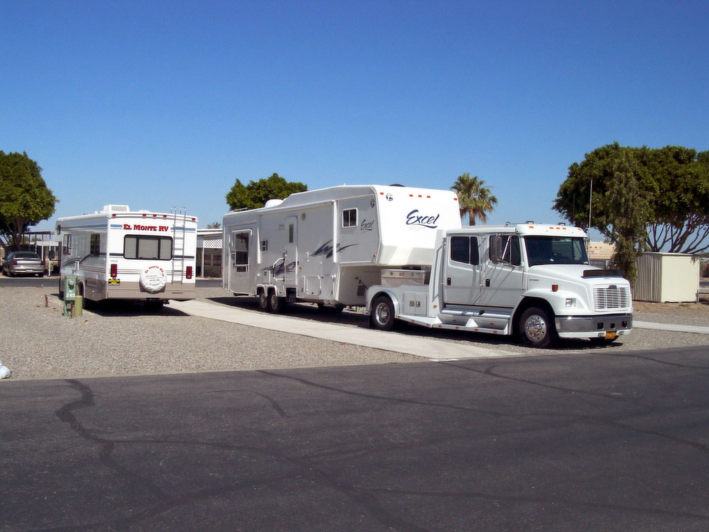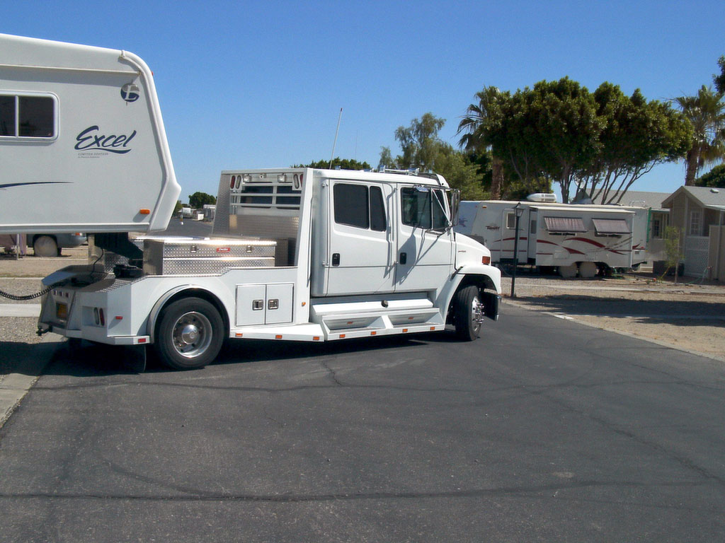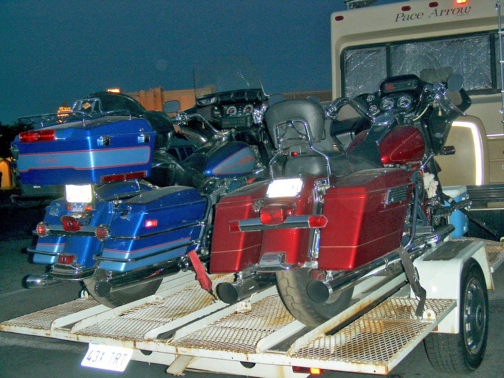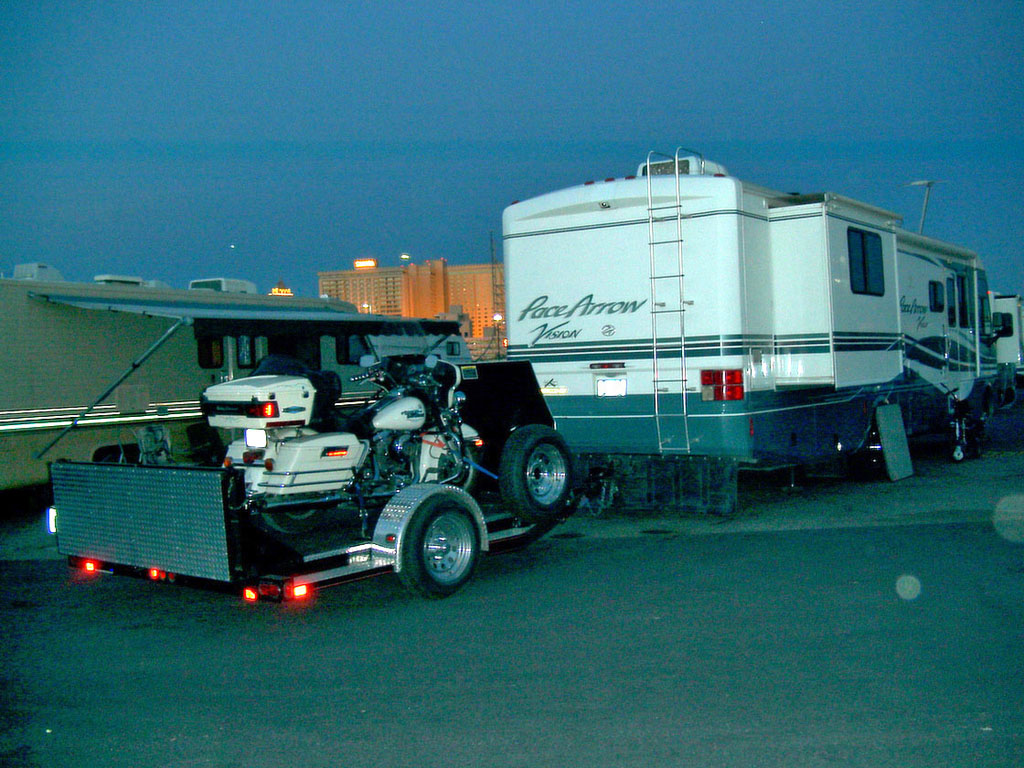 Auch wieder in Las Vegas: Slide Out Womo mit 2 Harleys auf dem